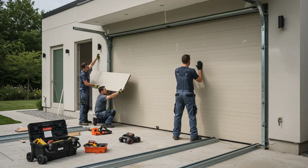 - Final Safety Check and Lubrication: After the repair, the system is tested through multiple open-and-close cycles. Safety reverse mechanisms are tested to ensure compliance with federal safety standards. All moving parts, including hinges, rollers, and bearings, are lubricated to ensure quiet and smooth operation.